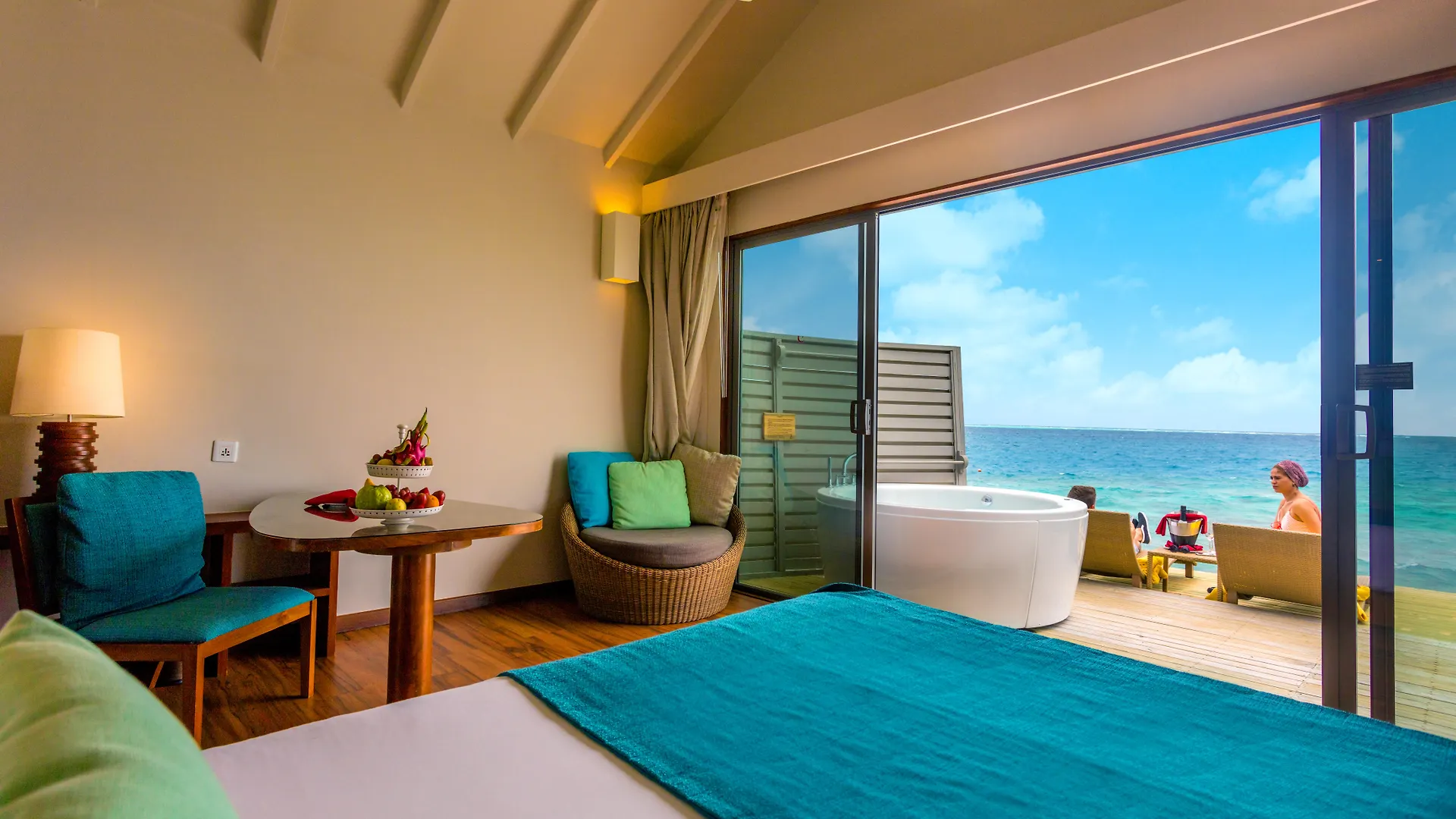 Diese exklusiven Unterkünfte bieten einen atemberaubenden Blick auf das türkisfarbene Wasser und lassen Sie das Gefühl haben, auf dem Wasser zu schweben. Mit privaten Terrassen und direktem Zugang zum Meer sind diese Overwater-Bungalows der Inbegriff von Luxus und Entspannung in Malé.